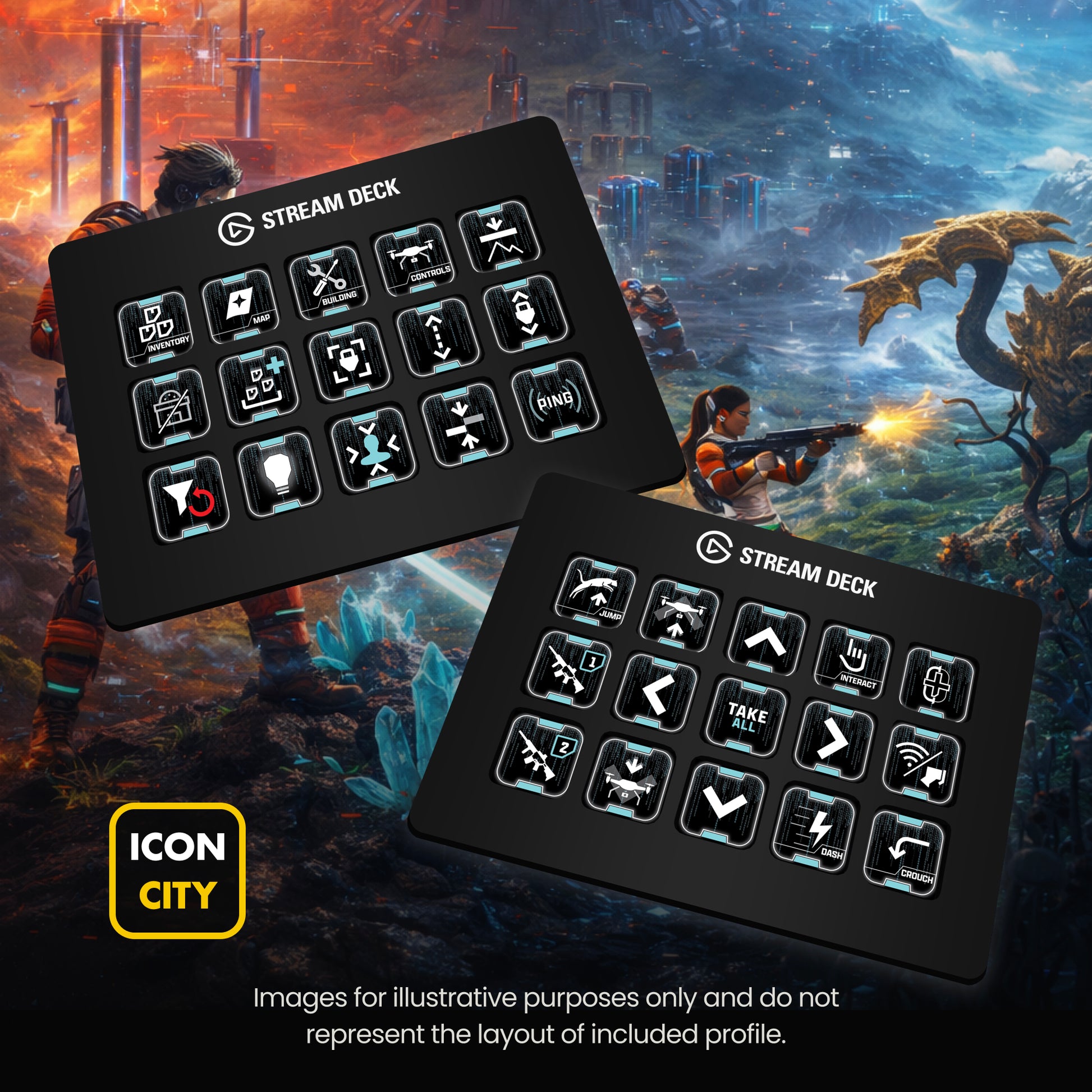 Any profiles included within our icon packs are designed for use with Elgato’s Stream Deck software. Most of our icons use hotkey buttons to map the button press to an action within the game using a keyboard shortcut.